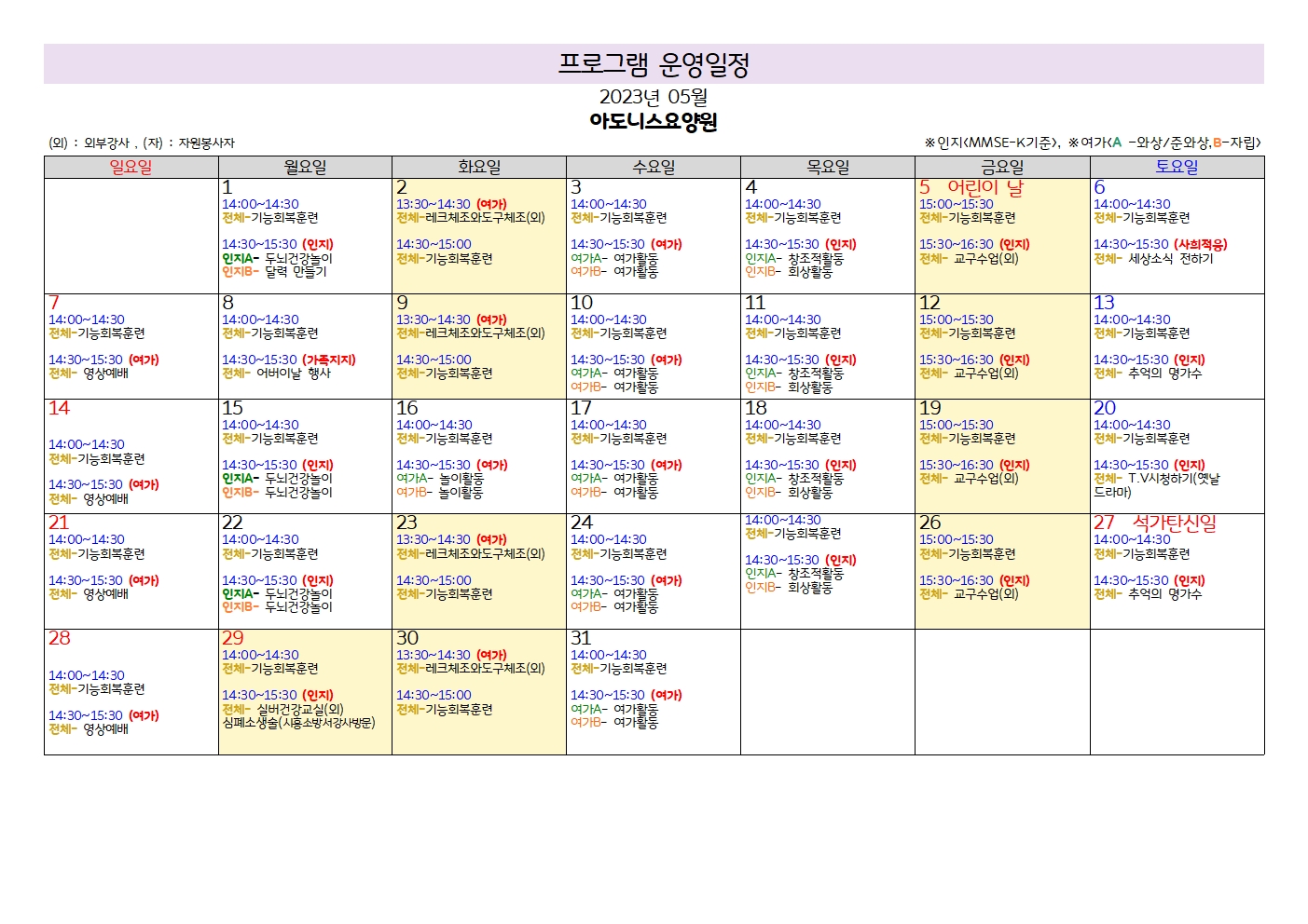 2023년 5월_ 프로그램운영계획표 입니다